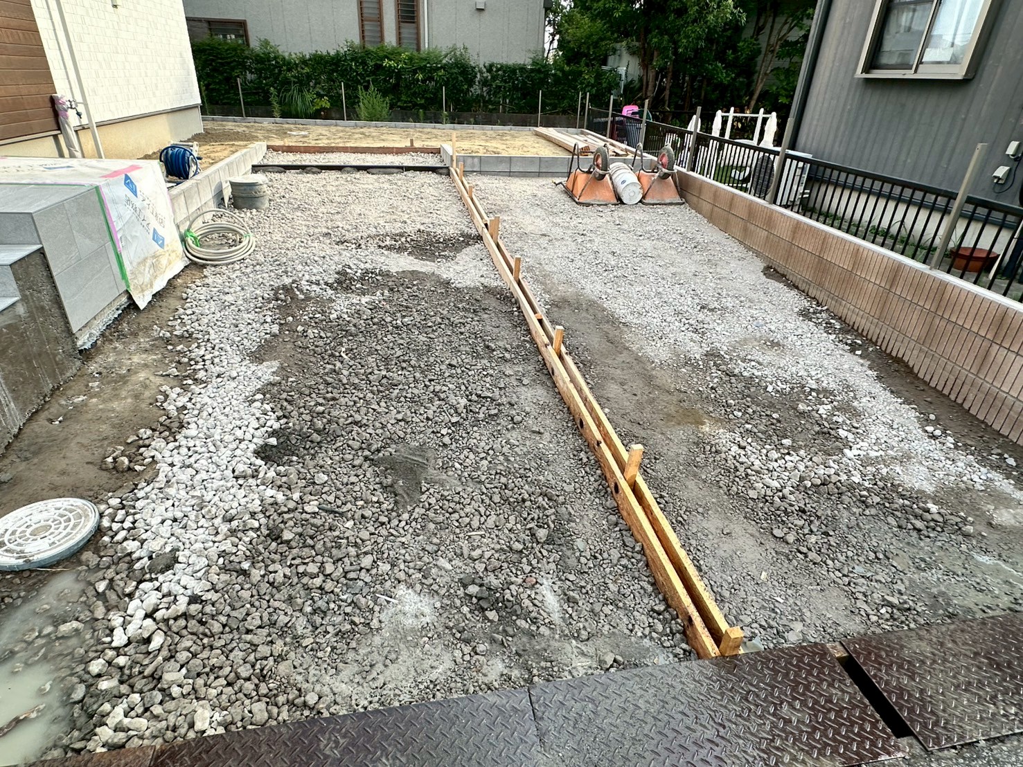 茂原市_Y様邸_フェンス支柱・天端モルタル・外周整地・駐車場工事